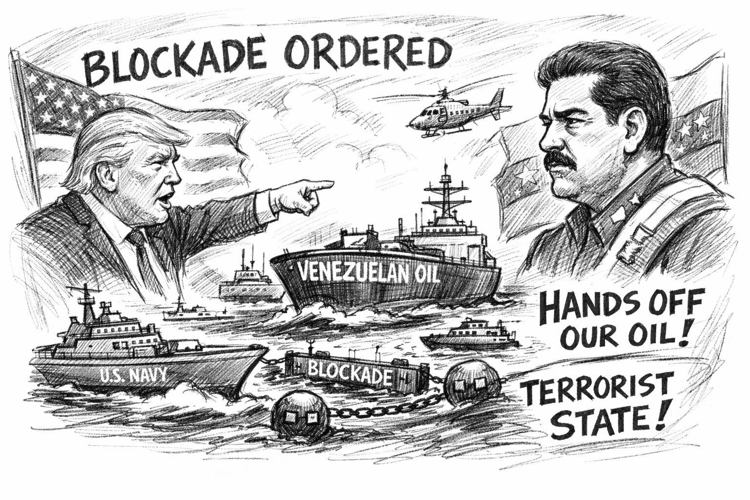 Președintele Statelor Unite, Donald Trump, a ordonat instituirea unei „blocade totale” asupra tuturor petrolierelor care intră sau ies din Venezuela, într-o nouă escaladare a presiunilor exercitate asupra guvernului condus de Nicolas Maduro. Măsura vizează principala sursă de venit a statului sud-american: exporturile de petrol.