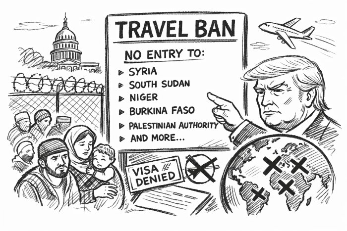 Președintele SUA, Donald Trump, a anunțat extinderea listei țărilor vizate de restricții de călătorie către Statele Unite, incluzând încă 20 de țări, ceea ce duce numărul total al statelor afectate la peste 35. Noua politică intră în vigoare la 1 ianuarie și reprezintă una dintre cele mai ample măsuri de limitare a imigrației legale adoptate de administrația Trump.