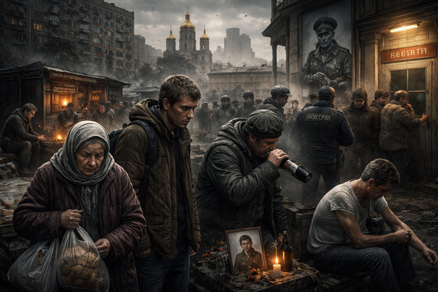 În timp ce propaganda rusă insistă pe forță, virtute, ortodoxie și misiunea civilizațională, realitatea este una de colaps demografic, degradare socială, o participare la practica bisericească foarte scăzută, o economie deformată de cheltuielile de război și violență de stat omniprezentă.
